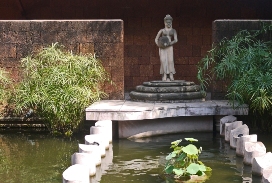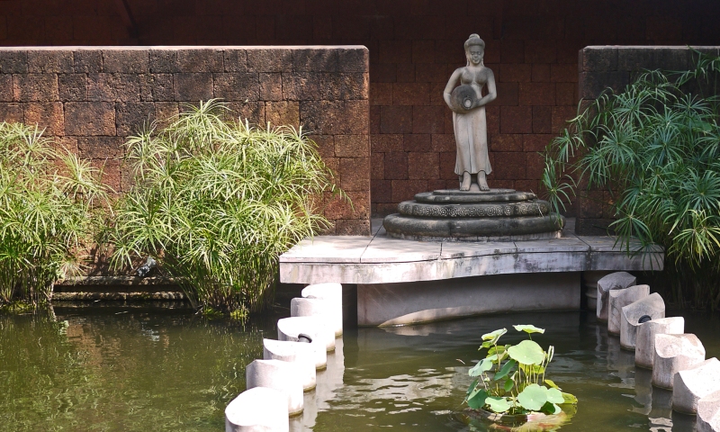 Le calme d'un bassin dans un jardin public de Siem Reap