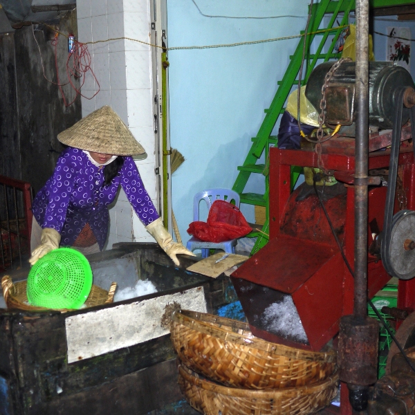 Les broyeuses de glace fonctionnent à plein rendement. Il fait déjà chaud à Nha Trang.